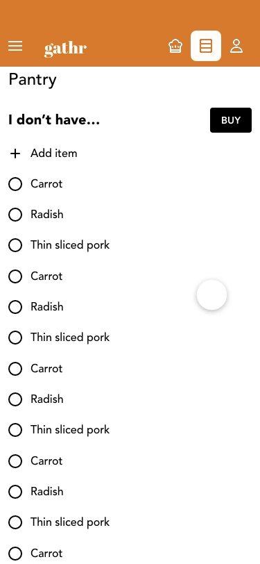 Two experts in the realm of UX Design and mobile apps tested out the first high fidelity prototype. Out of the 3 features listed above, the flows that included the “My List” screen (later renamed to “Pantry”) had the highest priority usability issues.
